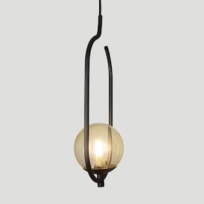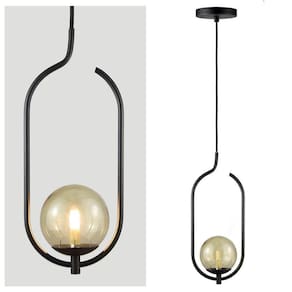 Lustre Pendente On Clip - Preto Com Globo De Vidro âmbar