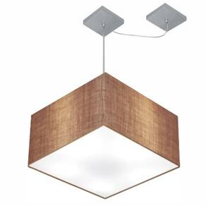 Lustre Pendente Quadrado Com Desvio Md-4271 Cúpula Tecido 30/40x40cm Palha