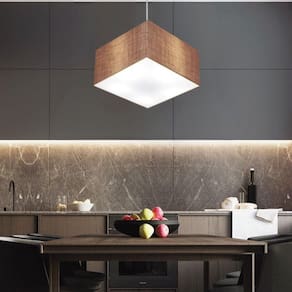 Pendente quadrado apresenta facilidade na instalação e manutenção e limpeza, além de possibilitar o ajuste da altura de acordo com suas necessidades. O que oferecem um charme único aos espaços e estão cada vez mais presentes na decoração.DimensãoCúpula em Tecido: 21x35x35cm