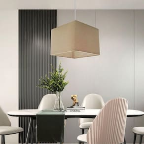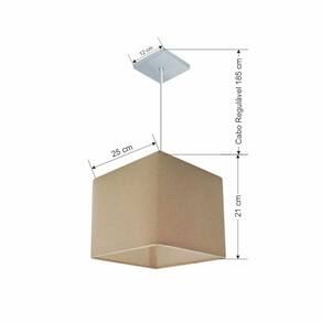Pendente quadrado apresenta facilidade na instalação e manutenção e limpeza, além de possibilitar o ajuste da altura de acordo com suas necessidades. O que oferecem um charme único aos espaços e estão cada vez mais presentes na decoração.DimensãoCúpula em Tecido: 21x25x25cm