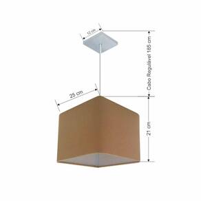 Pendente quadrado apresenta facilidade na instalação e manutenção e limpeza, além de possibilitar o ajuste da altura de acordo com suas necessidades. O que oferecem um charme único aos espaços e estão cada vez mais presentes na decoração.DimensãoCúpula em Tecido: 21x25x25cm