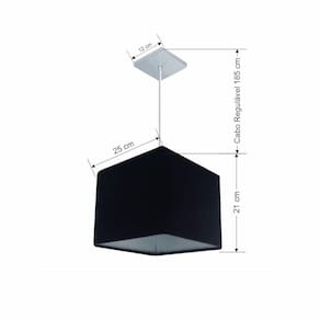 Pendente quadrado apresenta facilidade na instalação e manutenção e limpeza, além de possibilitar o ajuste da altura de acordo com suas necessidades. O que oferecem um charme único aos espaços e estão cada vez mais presentes na decoração.DimensãoCúpula em Tecido: 21x25x25cm