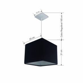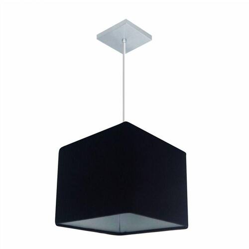 Lustre Pendente Quadrado Vivare Md-4058 Cúpula Em Tecido 21/25x25cm - Bivolt Preto 127/220v