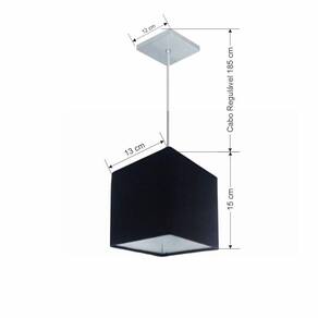 Lustre Pendente Quadrado Vivare Md-4223 Cúpula Em Tecido 15/13x13cm - Bivolt Preto 127/220v