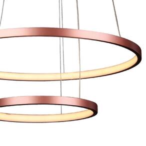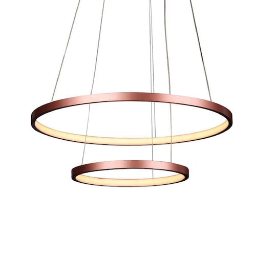 Lustre Pendente Quality Montreal 1301 Led Bivolt Cobre Características Gerais do Produto: - Dimensões AxLxP (mm): Círculo 1: 50cm de diâmetro; Círculo 2: 30cm de diâmetro; Todos: 2cm de altura - Composição: Produzido em alumínio - Comprimento dos Cabos: Cabo ajustável, máximo 150 cm - Fluxo Luminoso: 2254 lúmens - Lâmpada Inclusa: Sim - Local de Uso: Interno - Número de Módulos: 2 - Potência: 40W - Modelo/Tecnologia: LED Embutido - Temperatura da Cor: 3000K - Branco Quente Acompanha o produto: - 1 Lustre Pendente - Peças para Instalação - 1 Manual de Instalação