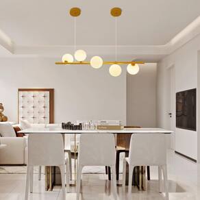 Lustre Pendente Retangular 90cm Leitoso 5 bolas + Lâmpada 6 meses de ACOMPANHA 6 LAMPADAS. Itens Inclusos: 1- Luminária Pendente Alumínio + Silicone com 5 bolas de vidro. Decore seu espaço com sofisticação, delicadeza e estética moderna elevam qualquer ambiente, oferecendo versatilidade e charme ,fabricado com alta qualidade este pendente de luz LED é perfeito para uso interno e proporciona um toque elegante, enquanto seus 3 kg de peso evidenciam sua qualidade premium. Cuidadosamente projetado para unir o requinte à praticidade, o Pendente é um destaque na decoração moderna, que vai além de sua funcionalidade ao se tornar um elemento de destaque em sua casa. Especificações: Tipo do Item: Pendente Contém LED: Sim Formato: Retangular Uso Interno/Externo: interno Voltagem: Bivolt Quantidade de lâmpadas necessárias: 5 Tipo de lâmpada necessária: Halopin Soquete de lâmpada necessária: G9 Comprimento: 90cm Diâmetro: 26cm Material: Metal e Vidro Leitoso Cor: Dourado O produto é novo Sim, todos os produtos são novos. Caso o produto não supra minha necessidade posso devolver ou trocar O produto tem Sim, todos os produtos têm . Se ainda houver alguma dúvida estamos a disposição para responder de segunda-feira a sexta-feira das 08:00 às 17:30. Marca: Nj Online