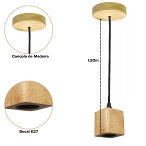 Pendente rústico em madeira, traz estilo e beleza para seu ambiente. Ideal para restaurantes, bares, salas de jantares, sítios, casas de campo, comércios, cozinhas, varandas, escritórios, resorts, áreas de estar, armazéns ou onde preferir, deixando o local mais elegante.Especificações do Pendente:- Materiais do Pendente: Madeira e fio - Modelo: Pendente Quadrado - Cabo ajustável - Bocal de madeira com rosca E27 - Voltagem: Bivolt- Potência máxima por pendente: Até 50W- Base para fixação no teto: Metal- Tampa/Canopla: Redonda de madeira - Fiação: Fio PP com Acabamento em tecido - Acompanha peças para montagem e instalação do produto- Indicado para uso: Interno- *ATENÇÃO: O pendente não acompanha nenhuma lâmpada. Dependendo do lote é possível que tenham pequenas diferenças de tonalidades de cores no pendente ou no fioMedidas do pendente: - Medida total do pendente sem o bocal de madeira: De ponta a ponta 1,20cm- Medida do fio: 1,12m - Tampa/Canopla: 10cm de diâmetro x 2cm de altura- Medidas do bocal quadrado de madeira: 6,5cm de altura x 6cm de largura - Medidas detalhadas nas fotos do anúncioItens inclusos no kit:- 1 Pendente/Bocal com fio - 1 Tampa/Canopla- 1 Kit instalação contendo parafusos, buchas e base para fixaçãoGarantia do vendedor: 90 dias