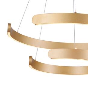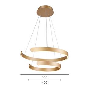 Especificações Gerais do Produto: Voltagem: Bivolt Dimensões AxLxP (mm): De cima para baixo: Círculo 1: 600mm; Círculo 2: 400mm Cor: Dourado Material: Alumínio e Silicone Garantia: 1 ano junto ao fabricante Referência: DCD03043 Cor Principal: Dourado Fluxo Luminoso: 6000 lúmens Comprimento dos Cabos: Cabo ajustável, máximo 250 cm Potência: 60W Local de Uso: Interno Modelo/Tecnologia: LED Embutido Temperatura da Cor: 3000K - Branco Quente