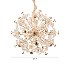 Especificações Gerais do Produto Voltagem: Bivolt Dimensões AxLxP (mm): 720x720 Cor: Dourado Material: Metal e Cristal Garantia: 1 ano junto ao fabricante Referência: DCD06215 Cor Principal: Dourado Comprimento dos Cabos: Cabo ajustável, máximo 200 cm Lâmpada Inclusa: Sim Local de Uso: Interno Número de Lâmpadas: 32 Soquete: G4