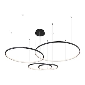 Especificações Gerais do Produto: Voltagem: Bivolt Dimensões AxLxP (mm): Círculo: 1000mm; Círculo: 800mm; Círculo: 600mm; Círculo: 400mm Cor: Preto Material: Alumínio e Silicone Garantia: 1 ano junto ao fabricante Referência: QD05365 Cor Principal: Preto Fluxo Luminoso: 12180 lúmens Comprimento dos Cabos: Cabo ajustável, máximo 500 cm Potência: 174W Local de Uso: Interno Modelo/Tecnologia: LED Embutido Temperatura da Cor: 3000K - Branco Quente