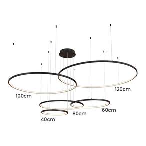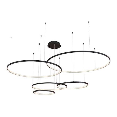Especificações Gerais do Produto:Voltagem: BivoltDimensões AxLxP (mm): Círculo: 1200mm; Círculo: 1000mm; Círculo: 800mm; Círculo: 600mm; Círculo: 400mmCor: PretoMaterial: Alumínio e SiliconeGarantia: 1 ano junto ao fabricanteReferência: QD05367Cor Principal: PretoFluxo Luminoso: 17430 lúmensComprimento dos Cabos: Cabo ajustável, máximo 500 cmPotência: 249WLocal de Uso: InternoModelo/Tecnologia: LED EmbutidoTemperatura da Cor: 3000K - Branco Quente