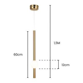 Voltagem: Bivolt;Dimensões AxLxP (mm): 600x120x120;Cor: Dourado/Branco;Material: Metal e Vidro;Garantia: 1 ano junto ao fabricante;Referência: SKY-3042;Comprimento dos Cabos: Cabo ajustável, máximo 150 cm;Potência: 12W;Local de Uso: Interno;Modelo/Tecnologia: LED Embutido;Temperatura da Cor: 3000K - Branco Quente; Itens Inclusos:1 Lustre Pendente Single Ean: 7898678150881