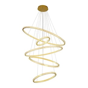 Voltagem: Bivolt;Dimensões AxLxP (mm): Círculo: 1200mm; Círculo: 1000mm; Círculo: 800mm; Círculo: 600mm; Círculo: 400mm;Cor: Dourado;Material: Metal, Alumínio e Acrílico;Garantia: 1 ano junto ao fabricante;Comprimento dos Cabos: Cabo ajustável, máximo 600cm;Potência: 500W;Local de Uso: Interno;Modelo/Tecnologia: LED Embutido;Temperatura da Cor: 3000K - Branco Quente;