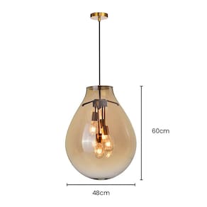 Voltagem: Bivolt;Dimensões AxLxP (mm): 600x480x480;Material: Metal e Vidro;Garantia: 180 dias junto ao fabricante;Comprimento dos Cabos: Cabo ajustável, máximo 200 cm;Lâmpada Inclusa: Não;Local de Uso: Interno;Número de Lâmpadas: 4;Potência Máxima (por soquete): 25W;Soquete: E27; Itens Inclusos:1 Lustre Pendente Ean: 7898678152991