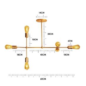 Produto perfeito para explorar a beleza e a luminosidade do seu ambiente Pode ser com lâmpadas convencionais para dar uma claridade especial ou até mesmo com lâmpadas de filamento decorativas, dando um ar sofisticado no seu lar. Material: alumínio com pintura eletrostática de alta durabilidade e performance Canopla: 11 cm Comprimento l x a : 45 cm x 40 cm Potência máxima: 60 w por bocal - bivolt Soquete: 6 unidades no padrão e-27 Atenção: esse produto deve ser instalado por um profissional da área elétrica. Não acompanha lâmpadas