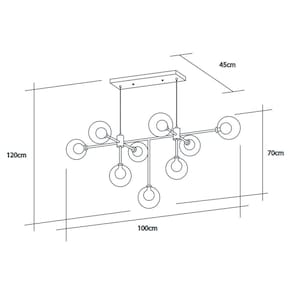 Lustre Pendente Startec Manhattan Dourado G9 Bivolt Lustre pendente Sputnik Manhattan O pendente Manhattan é deslumbrante, seu corpo em aço é resistente e elegante, o pendente é composto com soquetes G9 envoltos em uma cúpula de vidro leitoso que proporciona uma iluminação suave e aconchegante, envolto por uma segunda cúpula em vidro transparente, resultando em uma peça moderna e sofisticada.Informações Técnicas Cor Dourado/PretoDimensões do produto 120cm altura total - 100cm comprimento - 70cm altura da base com as lâmpadas - 45 cm de largura Tipo de Embalagem IndividualTipo de Soquete G9Quantidade de Lâmpadas Necessárias 9Lâmpadas Apropriadas LedPotência Máxima por Lâmpada 20WAcompanha Lâmpada NãoPossui LED Integrado NãoMaterial Vidro e AçoNecessita Montagem SimUso TetoTensão Bivolt Marca: STARTEC ILUMINAÇÃO