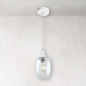 Lustre Pendente Taschibra Badih PP Canelado E27 Transparente Bivolt Branco