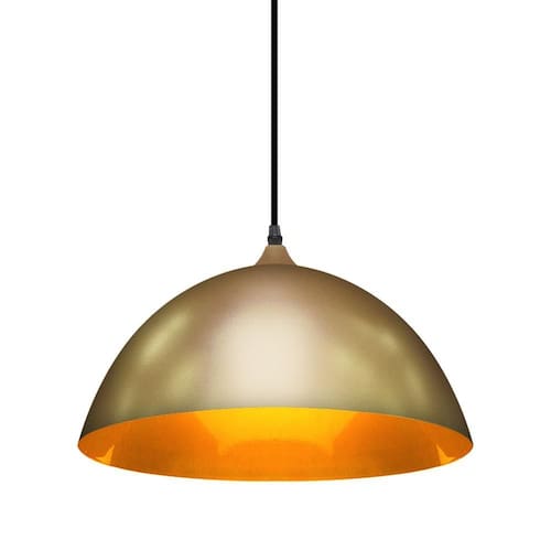 Lustre Pendente Taschibra Brooklyn E27 Bivolt Ouro Características Gerais do Produto: Dimensões AxLxP CM : 23 X 36 Produzido em: Alumínio, Aço, Porcelana e Componentes Elétricos Voltagem: Autovolt em 110v e 220V Cor acabamento: Ouro Potência: 60W Cor Interna: Cobre Cor do cabo: Preto Potência máxima Por soquete : 60W Ângulo de abertura: 120 Para uso em soquete: E27 Tradicional Comprimento do cabo: 90 cm, altura regulável Formato: Meia Lua : 1 ano junto ao fabricante Aplicação: Teto Acompanha lâmpada: Não Grau de proteção: IP20 Número de lâmpadas: 1 Acompanha o produto: 01 Pendente Completo 01 Kit Instalação : 1 ano junto ao fabricante Marca: Não Informado