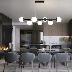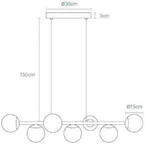 Lustre pendente trilho bubble c/7 globos Especificações Técnicas: - Sua estrutura retangular comporta tensão Bivolt. - Utiliza 7 Halopin - Coloração Preto polido. - Estrutura fabricado em alumínio reforçado. - Globos fabricados em vidro. - Fios de sustentação cristal invisível. - Altura regulável. - Altura máxima 150 cm. - Tamanho do globo 15 cm. - Tamanho da base de sustentação 30 cm atenção, esse tamanho se refere a fixação no teto - Modelo Jabuticaba com design inovador.