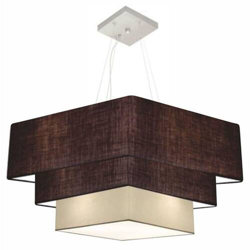 Pendente Triplo Quadrado Moderno Indicado para decoração de Mesa de Jantar, Sala, Sala de Estar, Sala de Jantar, Suíte, Quartos, Mezanino, Corredor, Balcão, Lojas, Comércios, Sala com Cozinha integrados, Bares e Restaurante, Sala de Tv.DimensãoCúpula em Tecido: 30x80x70x60cm