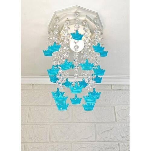 Lustre plafon luminária de teto quarto bebê de menino coroas azul Design moderno, ideal para decoração de quarto de crianças, bebê, ilumina muito bem e realça o ambiente. Lindo lustre para o quarto do seu príncipe - base plafon octogonal de 17 cm em acrílico na cor branca. - castanhas de acrílico transparente. - coroas de acrílico na cor azul bebê. - altura do lustre 25 cm. - voltagem: bivolt 127v 220v - lustre enviado montado pronto para instalação. Lâmpada não inclusa. Base 17 cm x 25 cm altura atenção mamãe grande por tempo limitado Marca: Não Informado