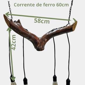 Ficha Técnica Rápida (Tudo que você precisa saber): - Material de Valor: Madeira maciça de Goiabeira (tratada com verniz). - Medida do Tronco: 58 cm de largura. - Fácil de Encontrar: Usa 4x soquetes padrão E27. - Tensão: Bivolt (110V/220V - a lâmpada define a voltagem). - Fixação Robusta: Acompanha 2 Correntes de Ferro estilo Ouro Velho (aprox. 60 cm). - Pendentes: Comprimento de 42 cm (cabo em corda preta). Peso Aprox.: 2,4 kg (verifique seu teto para uma instalação segura). Por ser um produto natural, as medidas podem variar alguns milímetros para mais ou menos. LÂMPADAS NÃO INCLUSAS. Você escolhe a cor e o formato para personalizar seu lustre!