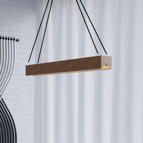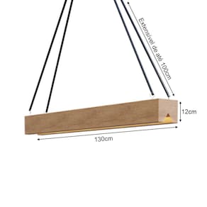 ITENS DO PRODUTO: 1 Lustre em madeira de 1,30m por 12Cm. Soquete para lâmpada tubular. Cabo de 1M de comprimento. Cabo de aço.