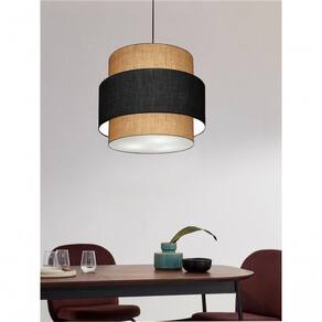 Lustre Sala De Jantar Com Desvio Vivare Md-4398 Cúpula Em Tecido 45cm Palha-preto-palha 127/220v