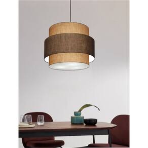 Lustre Sala de Jantar Com Desvio Vivare Md-4401 Cúpula em Tecido 60cm - Cor: Palha-café-palha | Voltagem: 127/220V