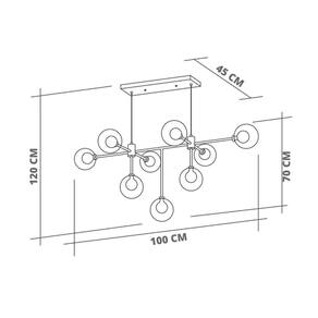 Lustre Pendente Startec Manhattan Moderno Globo 9XG9 Cobre Bivolt Características Gerais do Produto: Dimensões AxLxP cm : 70 X 40 X 100 Produzido em: Alumínio, Aço, Vidro e Componentes Eletrônicos Voltagem: Bivolt tanto em 110v como em 220v Cor Acabamento: Cobre Potência: 180W Cor do Cabo: Preto Potência Máxima Por Soquete : 20W Ângulo de Abertura: 320 Para Uso em Soquete: G9 Comprimento do Cabo: 1 metro, altura regulável Formato: Retangular : 90 dias junto ao fabricante Aplicação: Teto Acompanha Lâmpada: Não Grau de Proteção: IP20 Número de Lâmpadas: 9 Acompanha o produto: 01 Lustre Completo 09 Vidros Claro 01 Manual de Instalação 01 Kit Instalação : 90 dias junto ao fabricante Marca: Não Informado