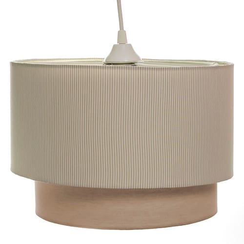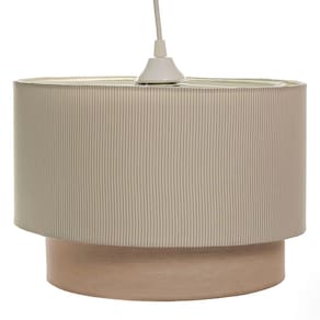 Lustre em formato tubular em duas partes, armações de arame galvanizado e os acetatos são forrados com tecido. Acompanha fiação completa.