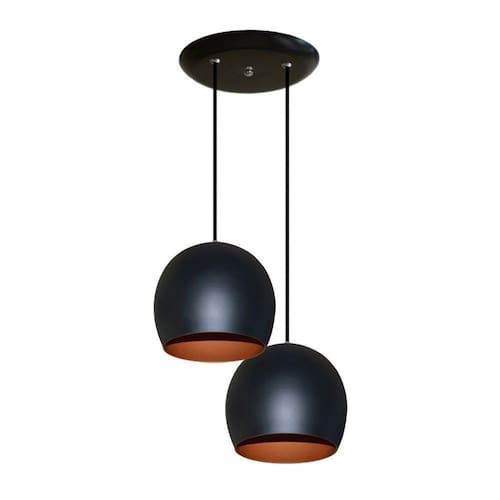 Lustres Luminária Pendente Com 02 Bolinhas Juntas - Varias Cores Cor Preto Com Cobre