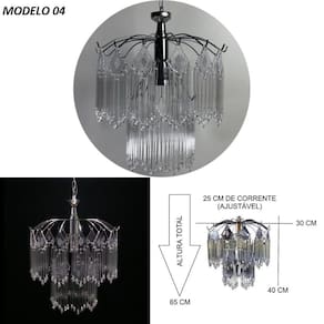 especificações do produto: Tipo: lustre com pingentes de vidro e cristal acrílico Base: redonda com 2 andares - 30 cm de diâmetro Cor da base: cromada prata Altura total: 40 cm + 25 cm de corrente ajustável até 65 cm Pingente: 15 cm - vidro e cristal acrílico de alto brilho Soquete: 1x e-27 em porcelana compatível com lâmpadas led, comuns ou econômicas Fiação: anti-chama, conforme exigência do inmetro Voltagem: bivolt 110v ou 220v Instalação: enviado montado e pronto para instalação pode ser instalado com ou sem a corrente, direto no teto