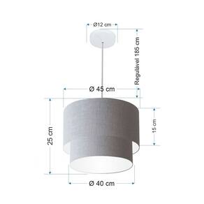 Lustres Pendentes Duplo Cilíndrico Vivare Md-4354 Cúpula em Tecido 45x40cm - Bivolt - Cor: Rustico-cinza | Voltagem: 127/220V