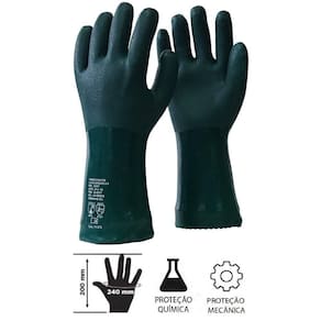 Com interior forrado em tecido de algodão, a luva proporciona melhor absorção do suor e maior conforto térmico, reduzindo a fadiga das mãos mesmo em atividades de longa duração. Além disso, o revestimento antiderrapante na palma garante firmeza no manuseio de ferramentas e materiais, inclusive aqueles recobertos de óleo, graxa e solventes, minimizando riscos de acidentes. O punho recortado de 46cm amplia a área de proteção, cobrindo parte do antebraço e reforçando a segurança em tarefas que exigem contato direto com substâncias agressivas.