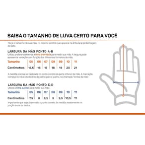 Medidas Aproximadas para BASE de tamanho da luva (Comprimento da Mão x Largura Palma da Mão - sem dedão)