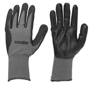 Luva de poliamida com borracha nitrílica, tamanho 10, PNV 1000, VONDER 1 Par de luvas. Possui pigmentos antiderrapantes de nitrilo na palma e face palmar dos dedos, proporcionando excelente aderência, além de punho tricotado em elastano com acabamento overloque.Certificados:35452número do Certificado de Aprovação - CA: 354523545135451 Indicada para proteção das mãos no manuseio de peças escorregadias, atividades de carga e descarga de materiais, em manutenções industriais, montadoras e autopeças e trabalhos que exijam aderência com excelente tato. Modelo:pnv1000 Material da luva:Poliamida com revestimento nitrílico Tamanho:10 Revestimento da palma:Borracha nitrílica Cor:Cinza e preta Dorso:sem cobertura no dorso Certificado de aprovação:35451 Marca: Não Informado Ean: 7893946203061