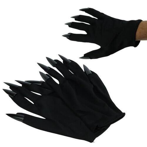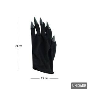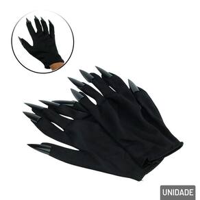 Luva de Poliéster Halloween com Unhas Preto - Variedades de Halloween em escolhas entre decoração, fantasias, enfeites, utensílios e muito mais;\n- Luva de poliéster com unhas stiletto pontudas para complementar fantasias;\n- Tamanho: Adulto;\n- Contém 1 par;\nEspecificações:\nMarca : NYR\nTipo de material : Poliéster\nCores ou Estampa : Preto\nDimensões do Produto : 24 X 13 X 0,5 CM\nDimensões da Embalagem : 27 X 11 X 1 CM\nPeso Bruto (Gramas) : 0.021 Marca: Não Informado