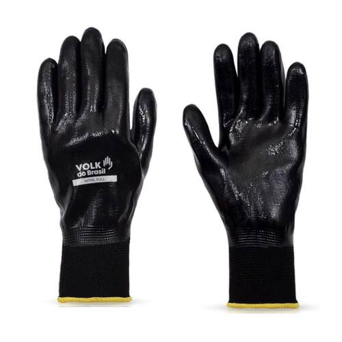 Luva De Segurança Emborrachada Nitril Full Quimica Volk G Tamanho: 9 g Luva de segurança confeccionada em fibras sintéticas, totalmente revestida com nitrila, lisa, punho em fibras elásticas e acabamento em fibras sintéticas.