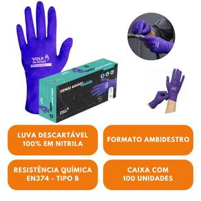 Luva de Segurança Nitrílica Descartável Sensi 60001 Violeta - Volk do Brasil