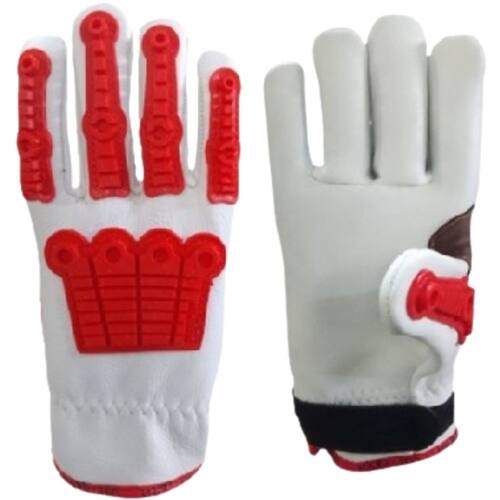 Luva de segurança confeccionada em vaqueta na palma, com reforço de aramida na face palmar e dedos, e dorso também em vaqueta. Projetada com proteção contra riscos de impacto no dorso, oferece fechamento de ajuste e tira, garantindo ajuste firme e segurança para suas mãos em atividades com risco de esmagamento ou pancadas.