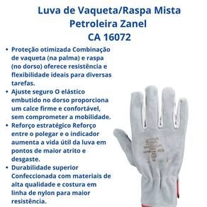 Adquira agora a sua Luva de Vaqueta/Raspa Mista Petroleira Punho 7cm TAM 9/10 Zanel CA 16072 e garanta proteção e conforto para suas mãos nos desafios do dia a dia!