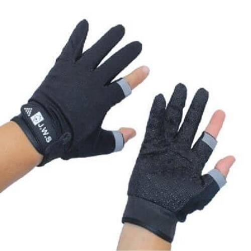 Luva de pesca 2 dedos expostos macia, confortável, bom ajuste.
