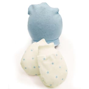 Luva e Touca Bebe 2 Unidades Estampadas Menino Algodao - Único - Azul Bebê
