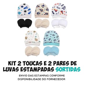 Kit toucas e luvas BABY DELUXE para bebê recém-nascido - Estampas Sortidas Para Menino