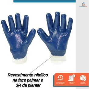 Características técnicas: Confeccionada em malha de algodão tricotada em uma só peça. Revestimento nitrílico na face palmar e 3/4 plantar. Punho elástico. Certificado de aprovação: CA Nº 49.476. Tamanho: 10/XG Cores: Palma, ponta dos dedos e parcial dorso azul, e parcial dorso e punho bege. Normas técnicas: EN 407:2004, BS EN 388:2016 + A1:2018, ISO 21420:2020 Níveis de desempenho: 3211X, X1XXXX Ref.: 7971273 Marca: Starfer Ean: 7891638065096