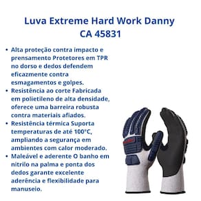 Adquira agora a sua Luva Extreme Hard Work DA43600 Danny CA 45831 e garanta proteção de alto impacto e resistência ao corte para os trabalhos mais exigentes!