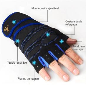 Material: Microfibra, polyester neoprene e gel Marca Gold Sports Largura da palma:p 8-9cm, m 9-10cm, l 10-11cm