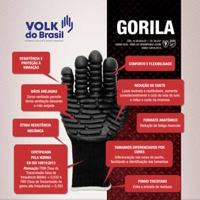 CA: 38257;RESISTÊNCIA MECÂNICA – EN388 – Desempenho 4243B;RESISTÊNCIA VIBRAÇÃO – ISO 10819 – Desempenhos TRM = 0,832 e TRH = 0,593;Uso: Reutilizável;Formato: Anatômico;Estrutura: Suporte Têxtil;Modelo da Estrutura: Tricotado;Material Suporte: Fibras naturais e sintéticas;Punho: Tricotado;Grip: Gomos de borracha foam.