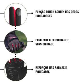 Fabricada com reforços nas palmas e polegares, as luvas são resistentes à abrasão e mantêm a sensibilidade para acelerar, frear e trocar marchas com precisão.